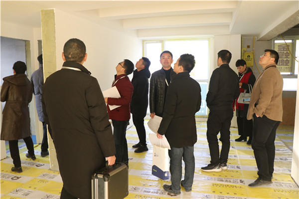 评审团一行,第一站来到了简乐山水小区,对正在施工中的工地,进行了考查、评审。