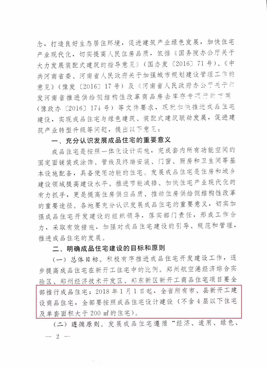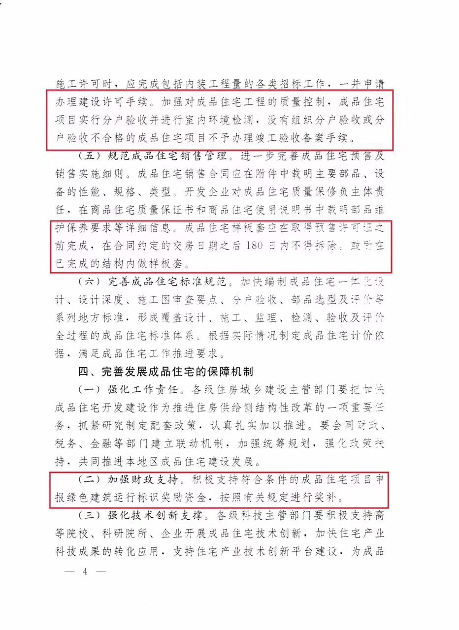 关于加快发展成品住宅的指导意见